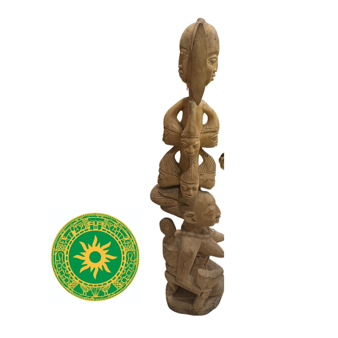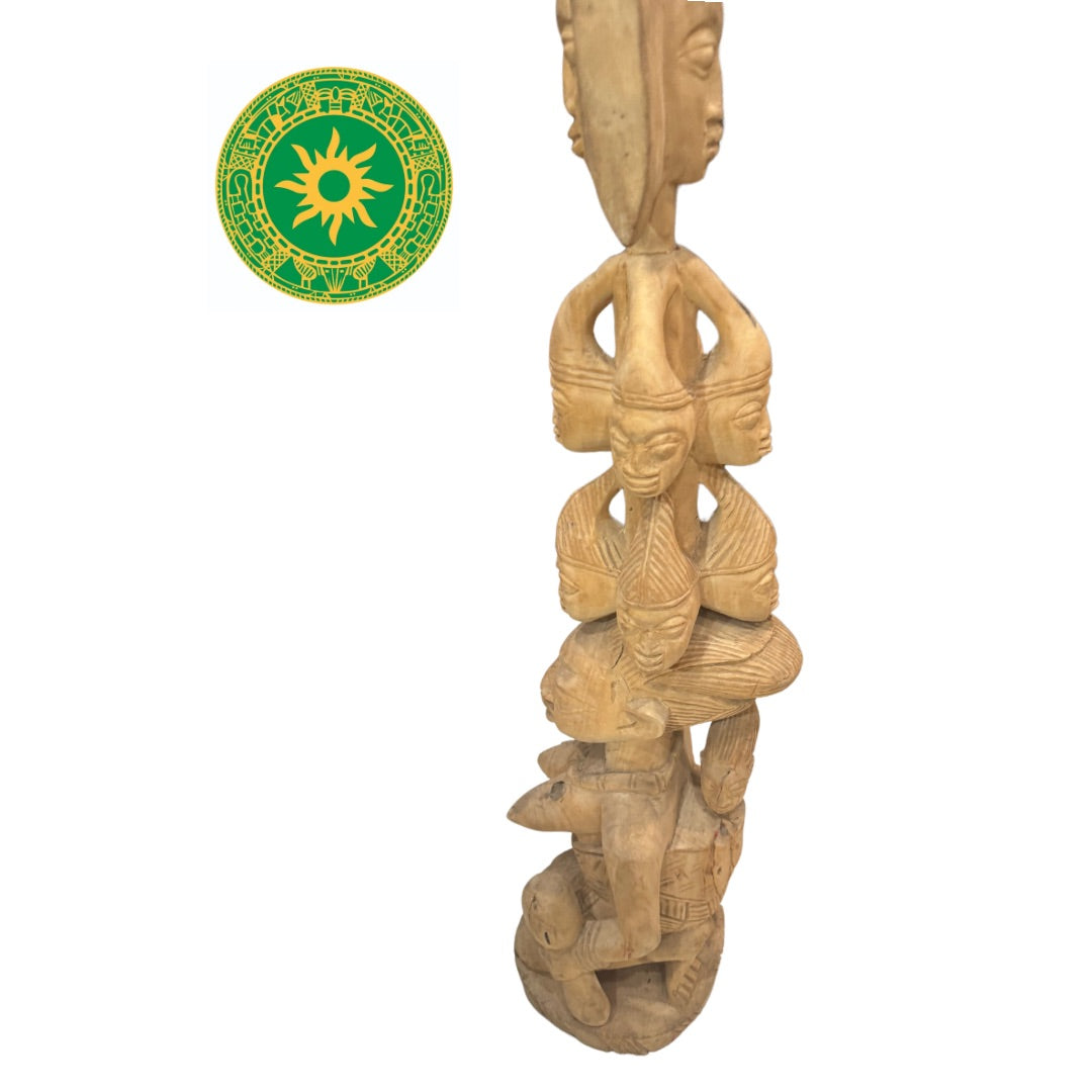 Icono de Oya con varias caras talladas en representacion alegorica del Orisa Oya Oriri, tallada en madera 100% original con una estatura de 46 pulgadas.