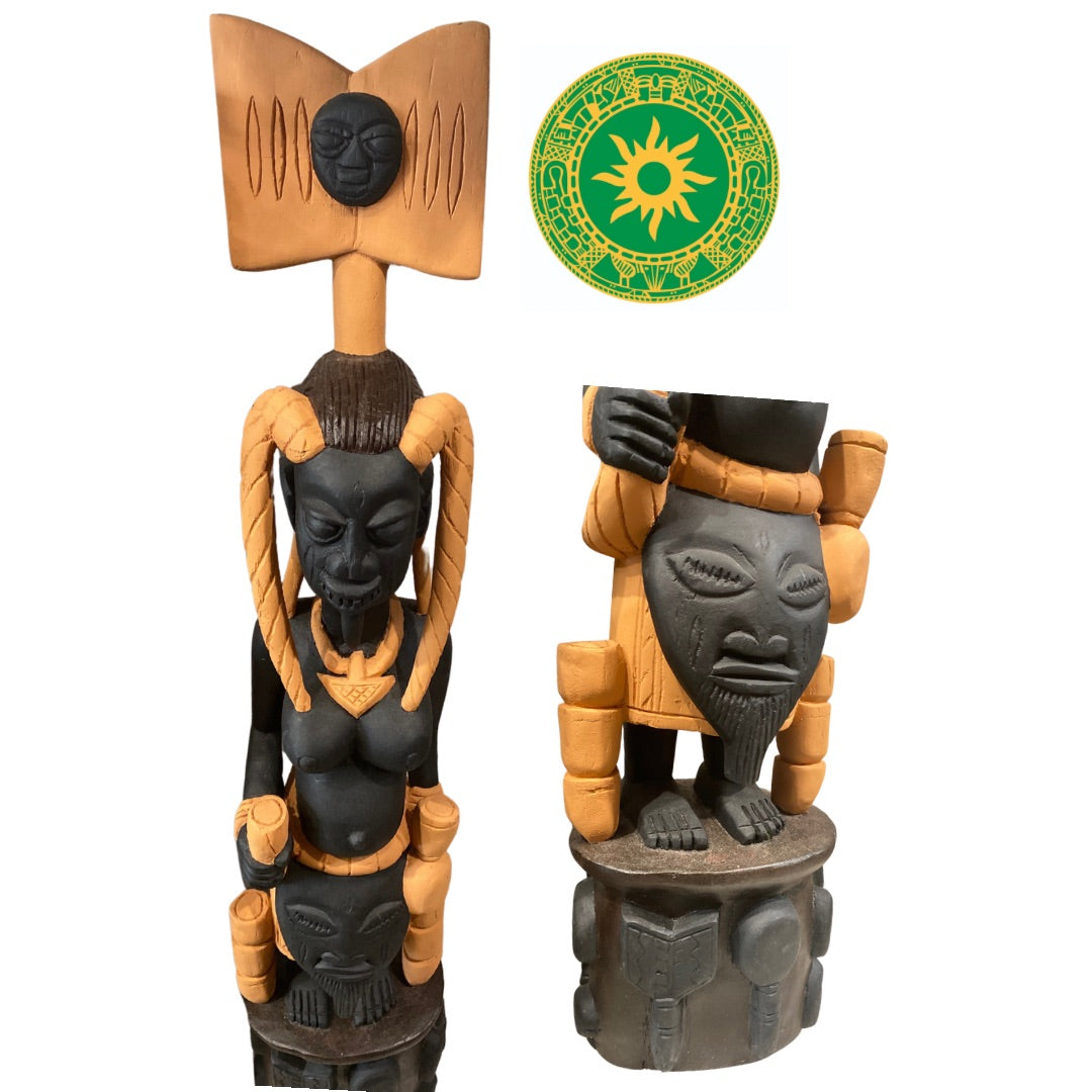 Icono Oya. Icono de sango tradicional africano con todo traído de Africa Nigeria. Mide aproximadamente 48” de alto y 9" de ancho.