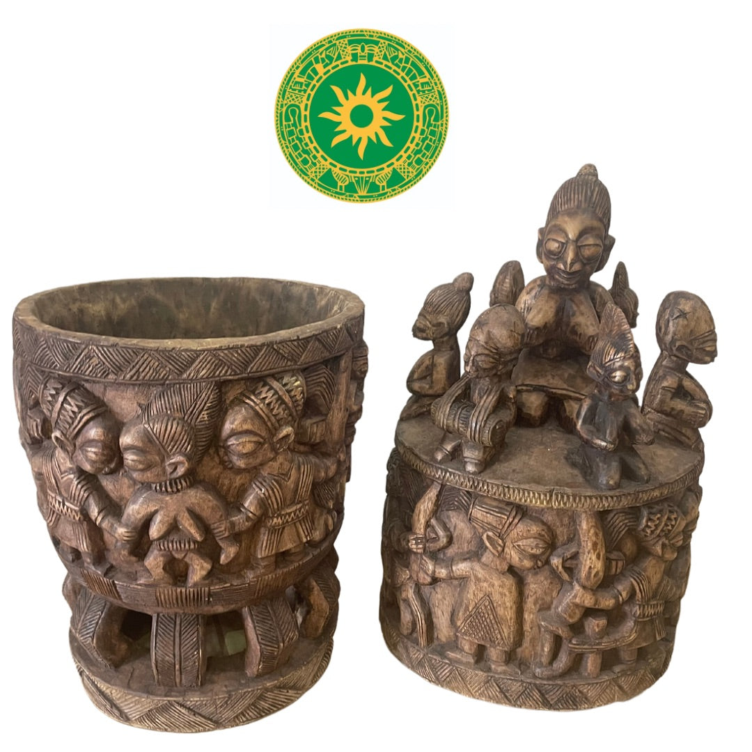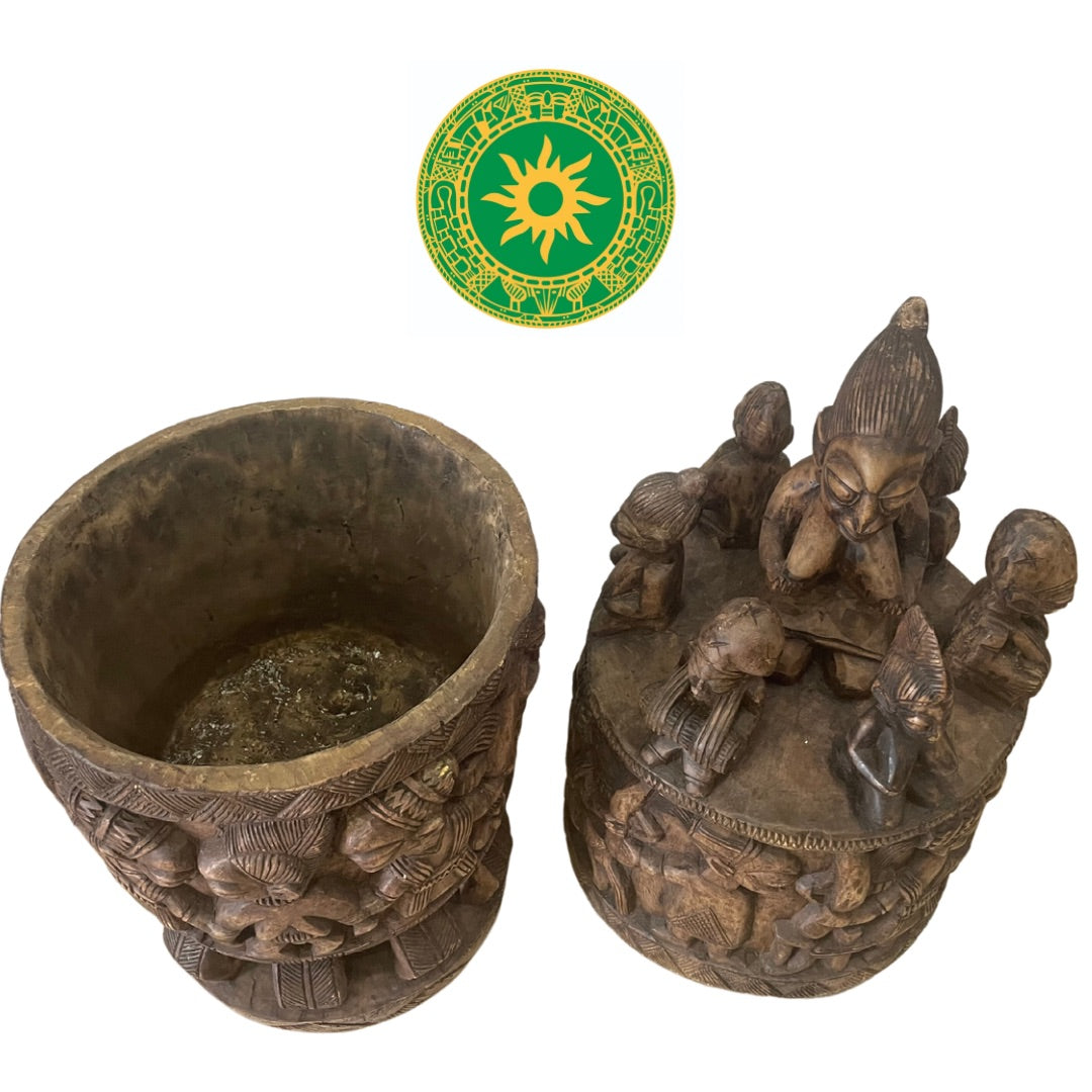 Ajere Tradicional. Recipiente de madera para reposar los ikines. Sopera de Ifa tradicional. Y demás usos. Mide 44" de ancho y 42" de alto.