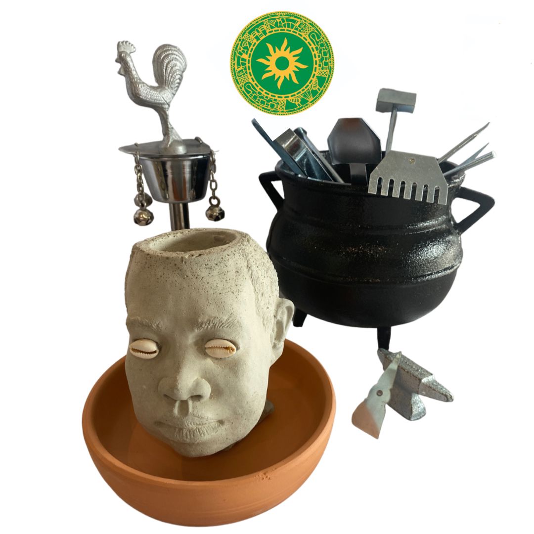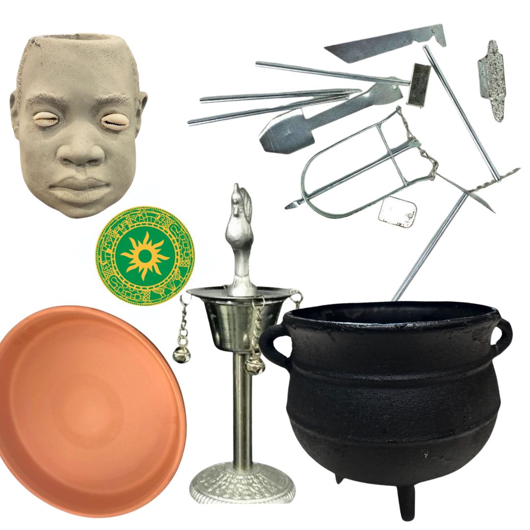 1 Cauldron -1 Ogun tool - 1 ozun - 1 elegua -1 well for elegua.