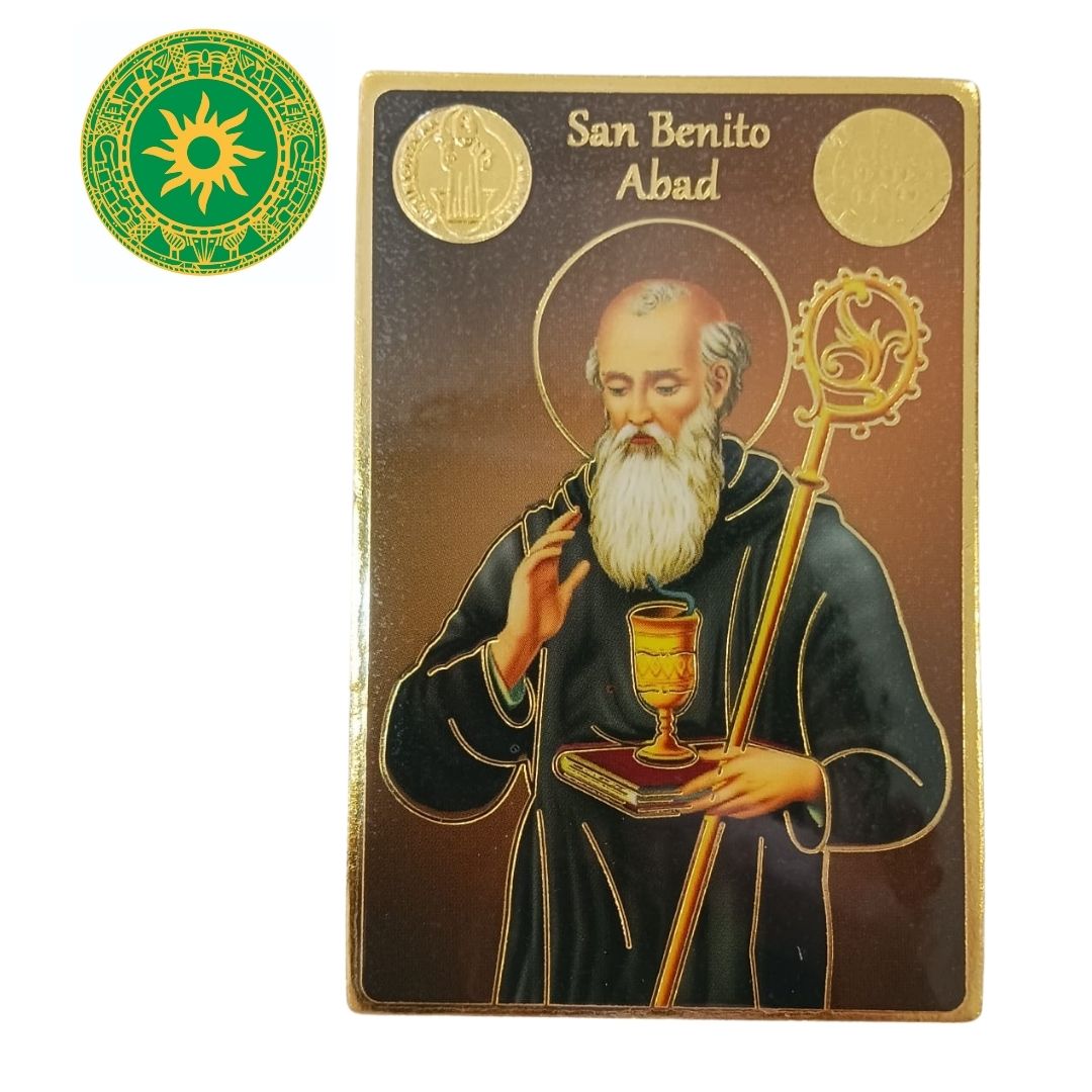 Oracion e Imagen San Benito Abad . Oraciones e Imagen Catolicas. Por una caratula tiene la imagen y en la otra la oracion.