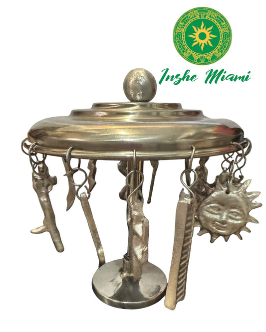 Cofre de Olofi Acero Inoxidable 8.7” – Lata Espiritual con Cierre Seguro para Ritual Yoruba