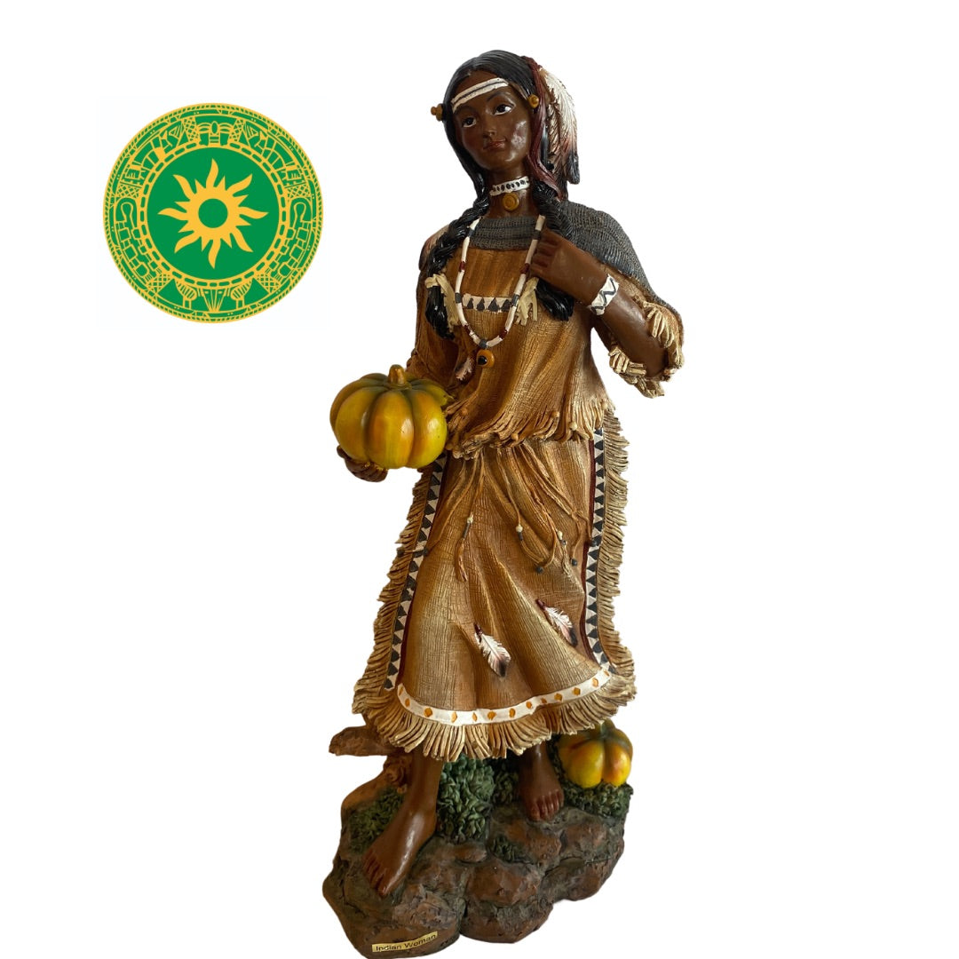 Estatua de India con calabaza en su mano. De aproximadamente 14” de alto.