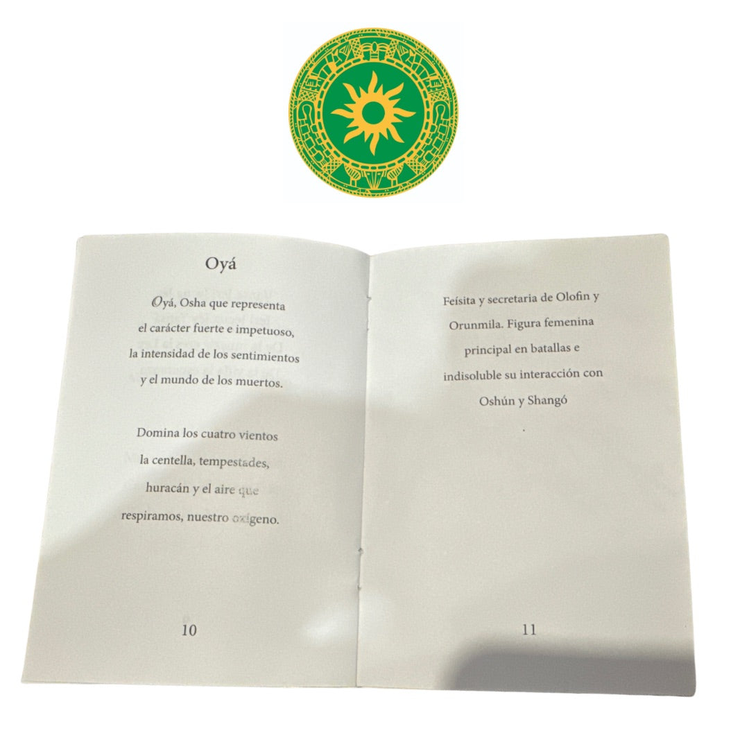 Libro Alabanzas a Oya. Pequeño formato de 6"x 4" con 10 paginas. Muy usado para regalos al recibir este santo y sus seguidores.