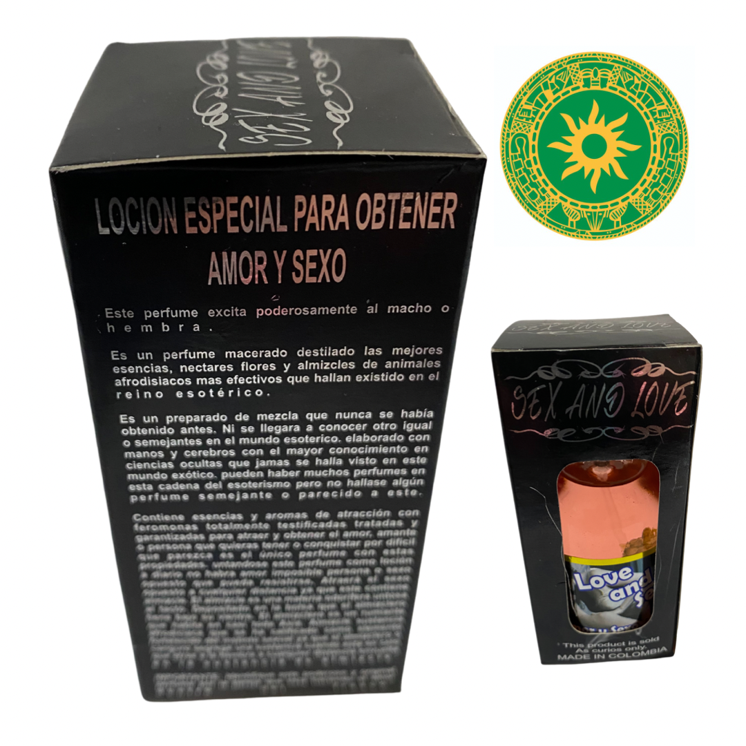 Loción amor y sexo. Fabricado en Colombía. Contiene feromonas y Chondú, además de esencias y aromas que exitan poderosamente.