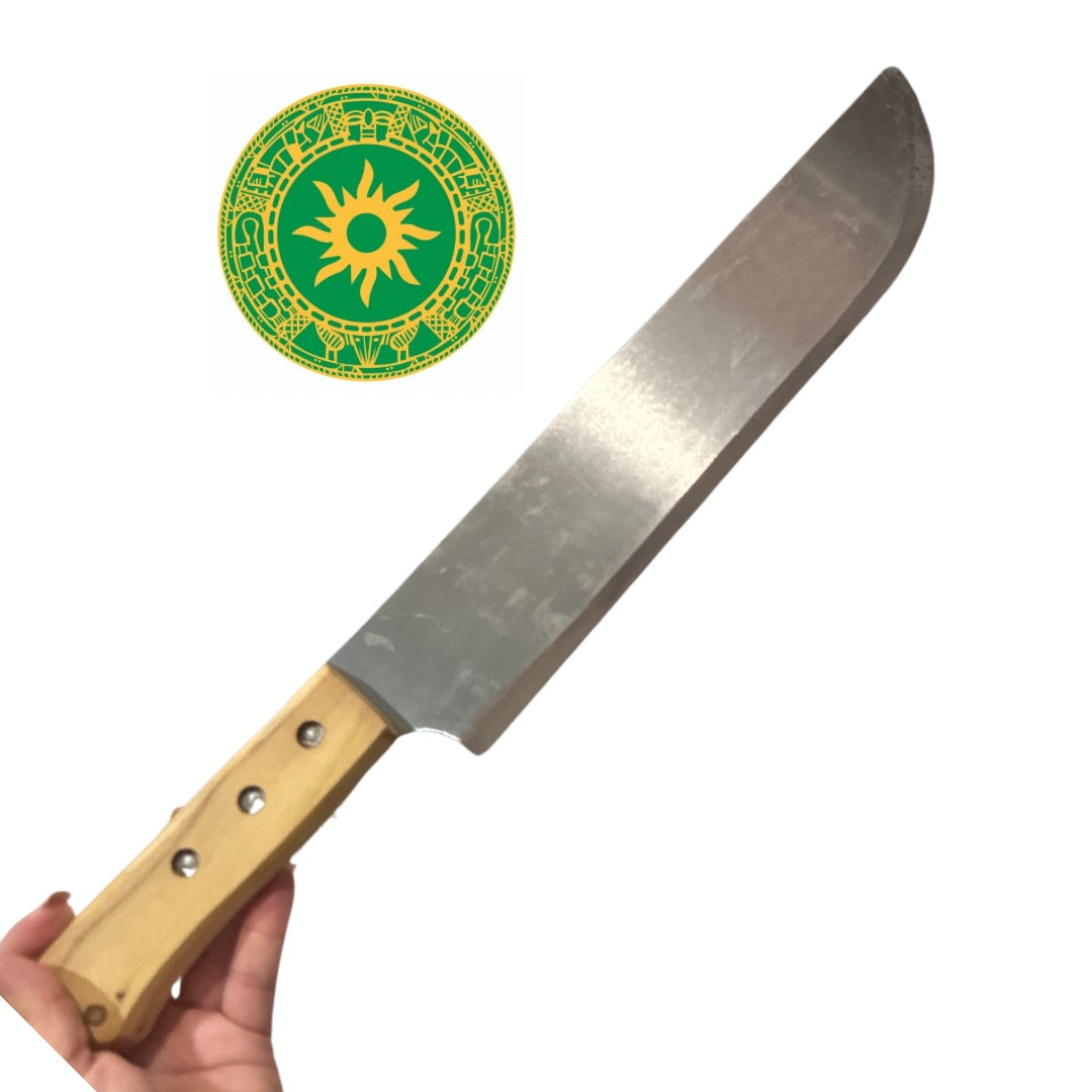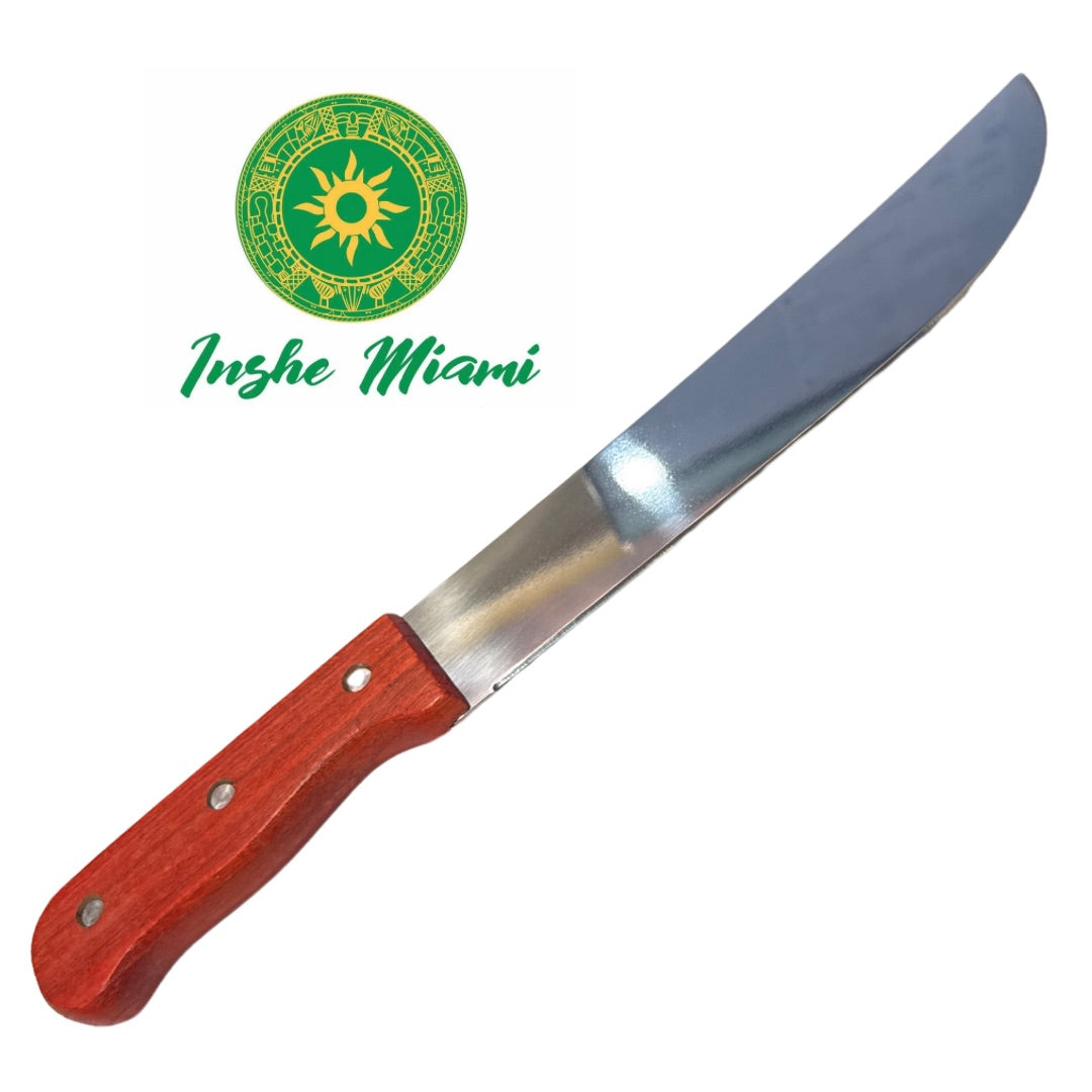 Machete mide aproximadamente 12" su hoja y con el cabo 16", uno de los tamanos mas usados para Oricha Ogun y para ebo, mas conocido como machetin de 12".