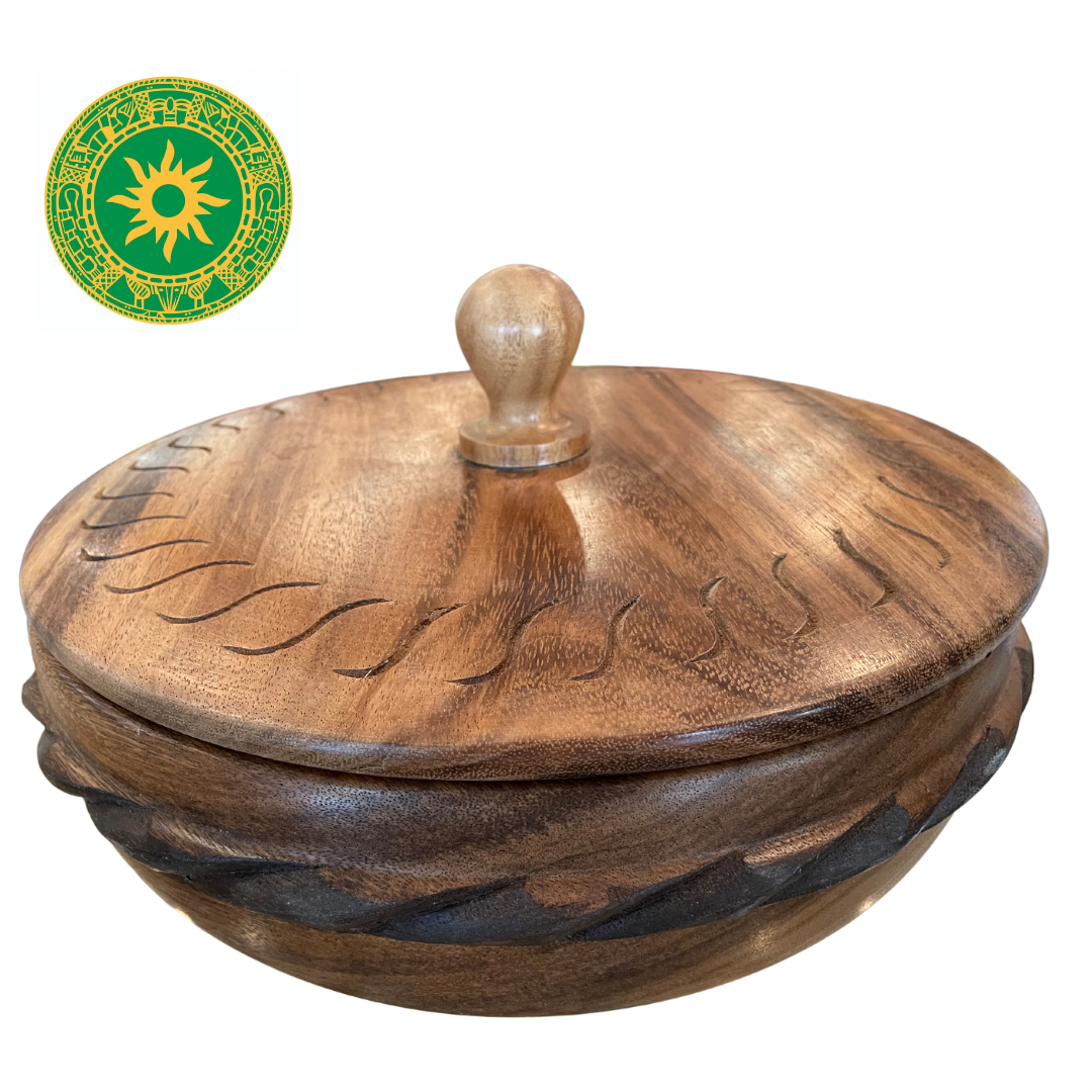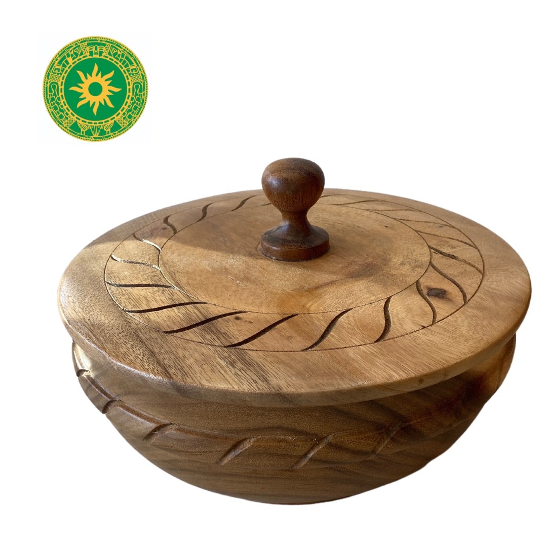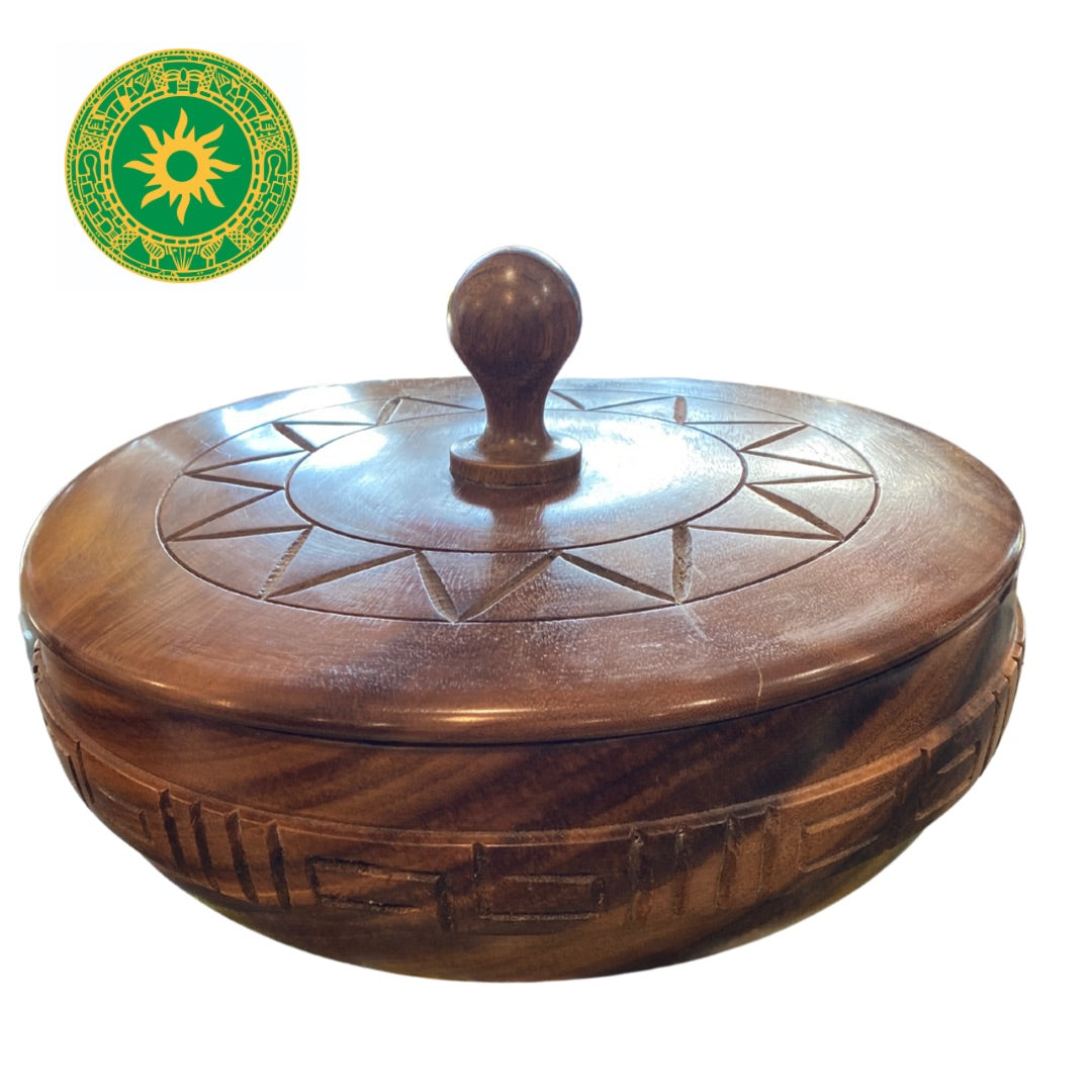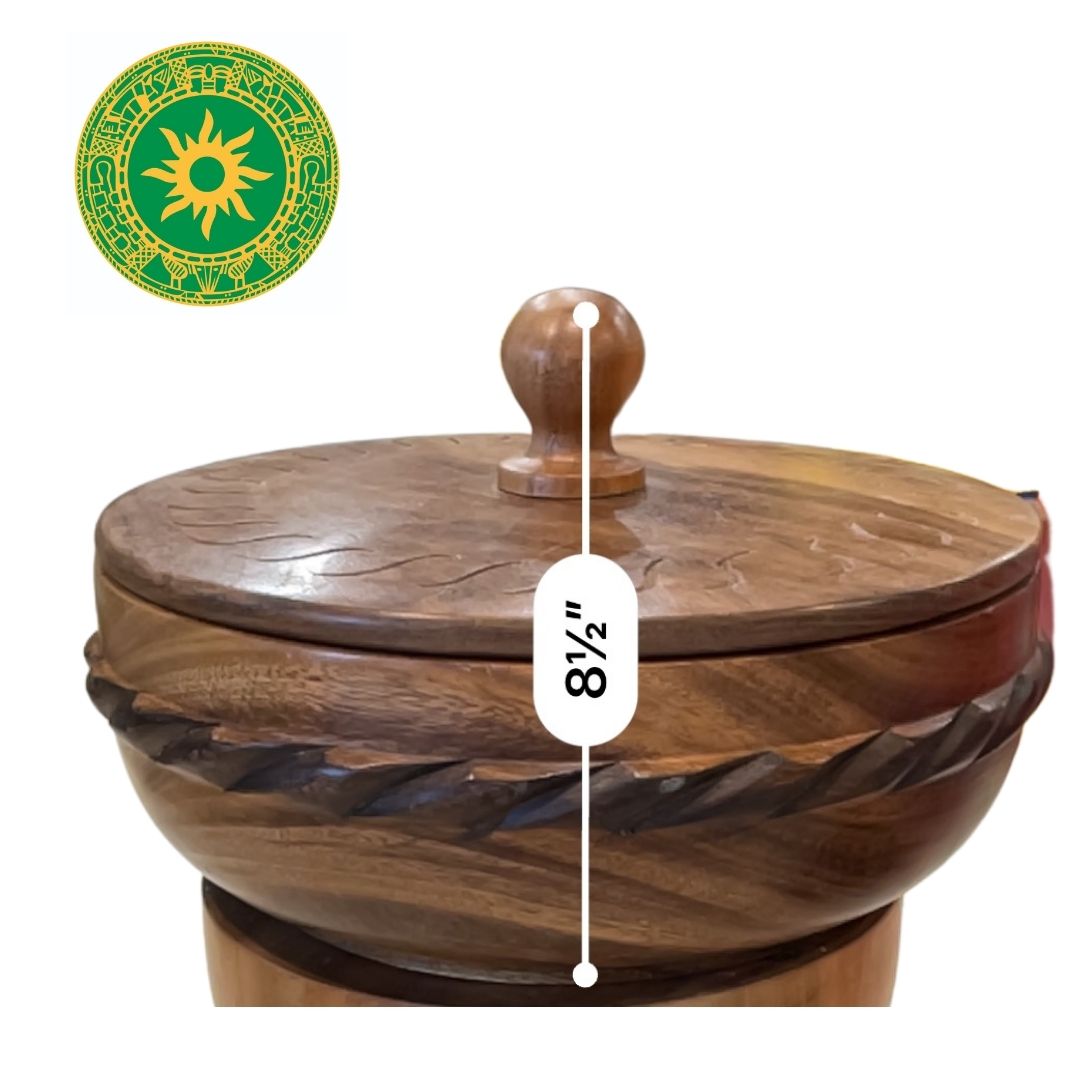 Hermosa Batea de chango o Orula. Grande. Espaciosa. Madera tallada. De aproximadamente 14” de ancho y 8” de alto. Batea hechas a mano por talladores. Pesa la tapa tanto como la batea es madera.