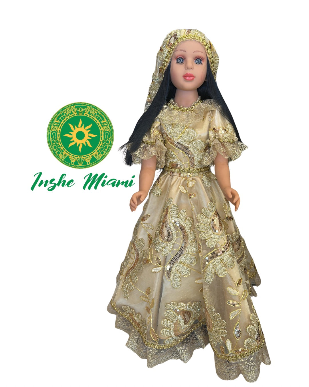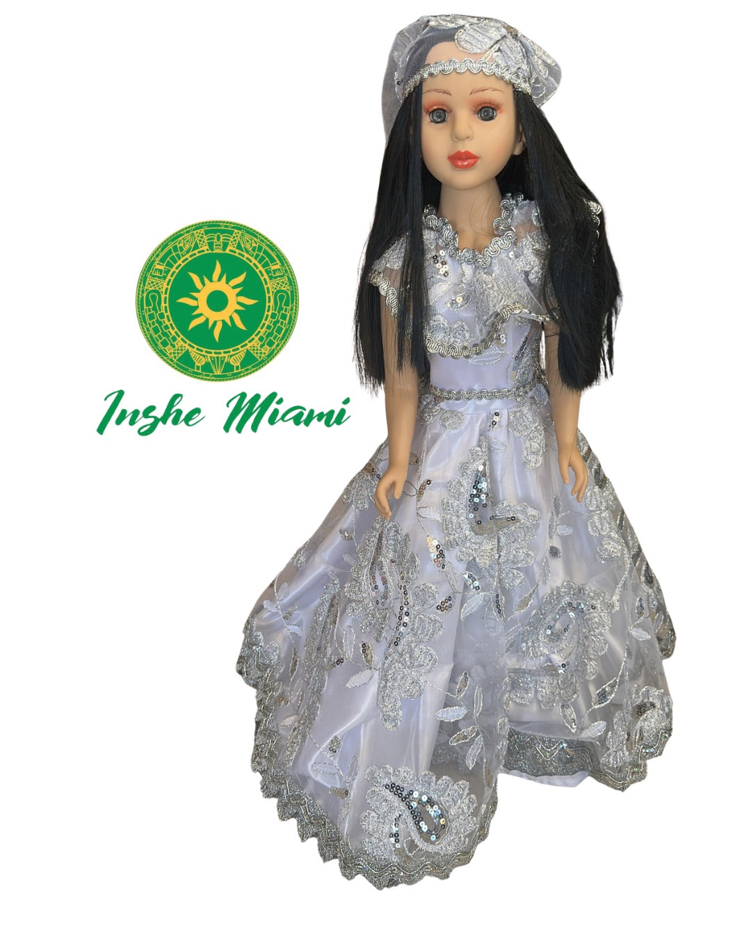 MUÑECAS GRANDES, ESTILOS CON SATIN Y BELLAMENTE DECORADOS CON ENCAJES, SE ABRE POR SUS EXTREMIDADES,de aproximadamente 26" de altura.