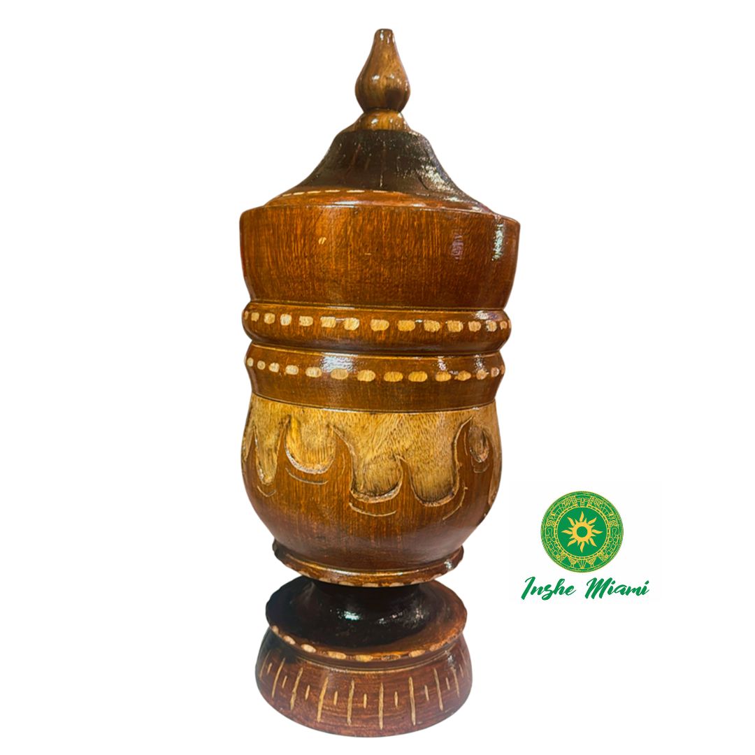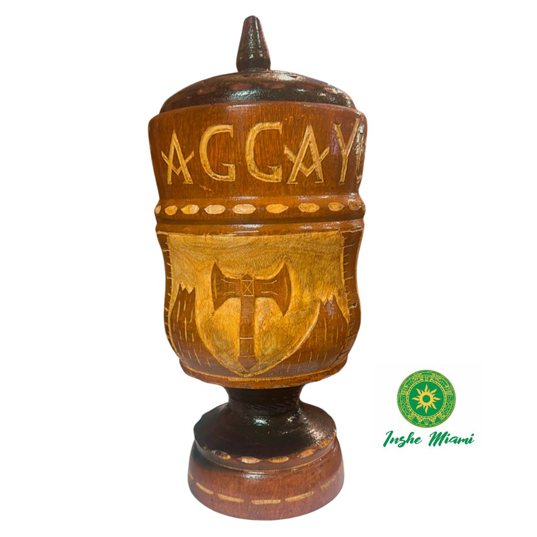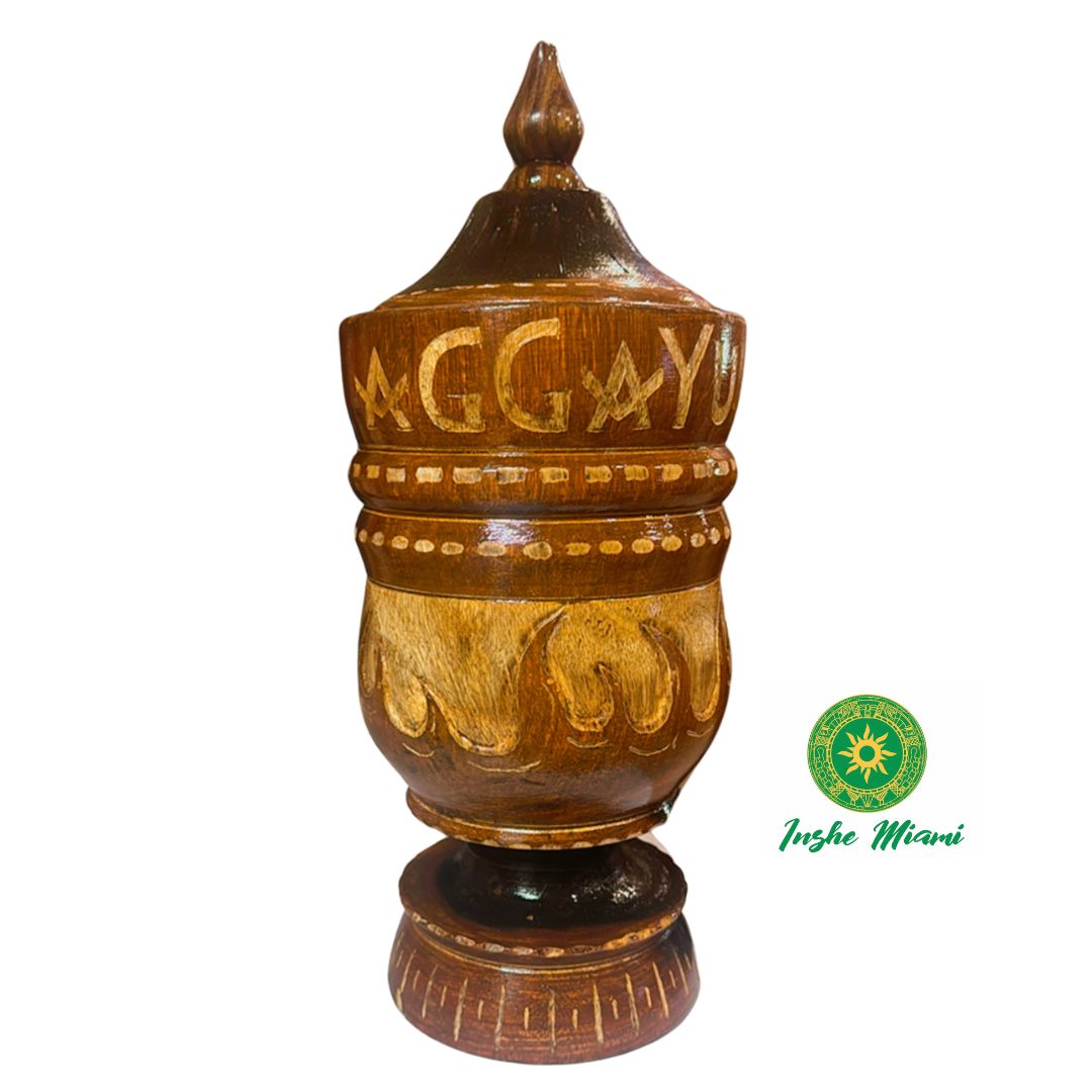 Lebrillo para AGAYU de madera tallado es una pieza artesanal que se utiliza en prácticas espirituales y ceremoniales. Este lebrillo está elaborado con madera cuidadosamente trabajada para simular un diseño de fuego, lo que le confiere un aspecto visualmente impactante y simboliza la fuerza y energía de AGAYU.