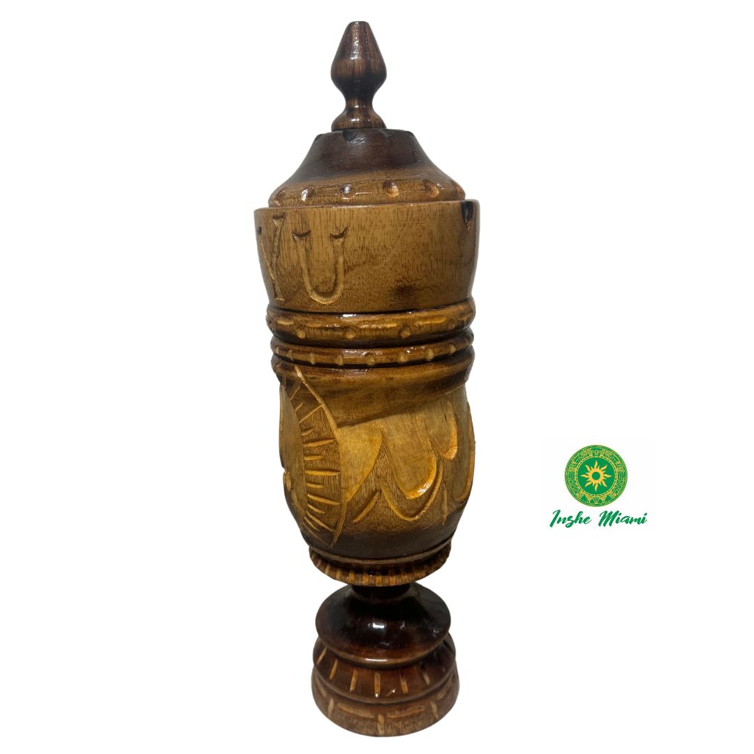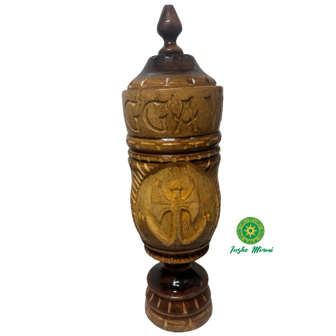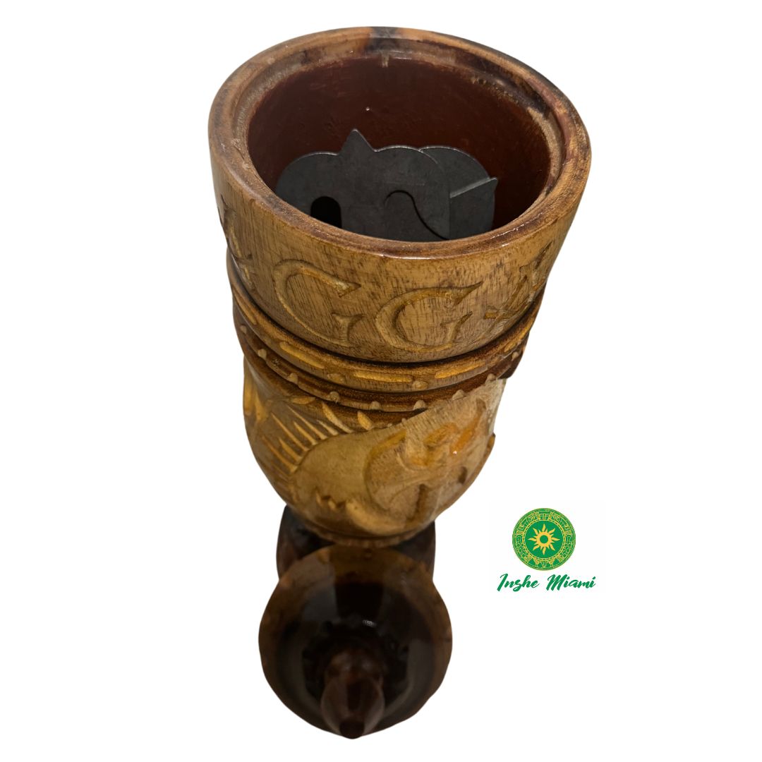 Lebrillo para AGAYU de madera tallado es una pieza artesanal que se utiliza en prácticas espirituales y ceremoniales. Este lebrillo está elaborado con madera cuidadosamente trabajada para simular un diseño de fuego, lo que le confiere un aspecto visualmente impactante y simboliza la fuerza y energía de AGAYU.