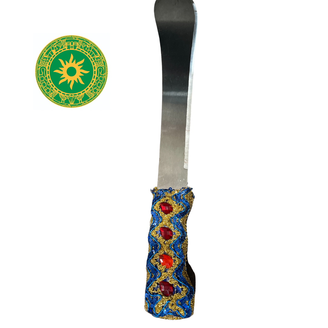 Machete Preparado para Yemaya Okute con cabo forrado con sus colores. Varia de uno a otros, son decoraciones hechas a mano y a la creatidad del momento, pensando darles siempre una pieza unida y diferente. Puedes comunicarte con el almacén al 7869553724 y deseas ver el modelo disponible.
