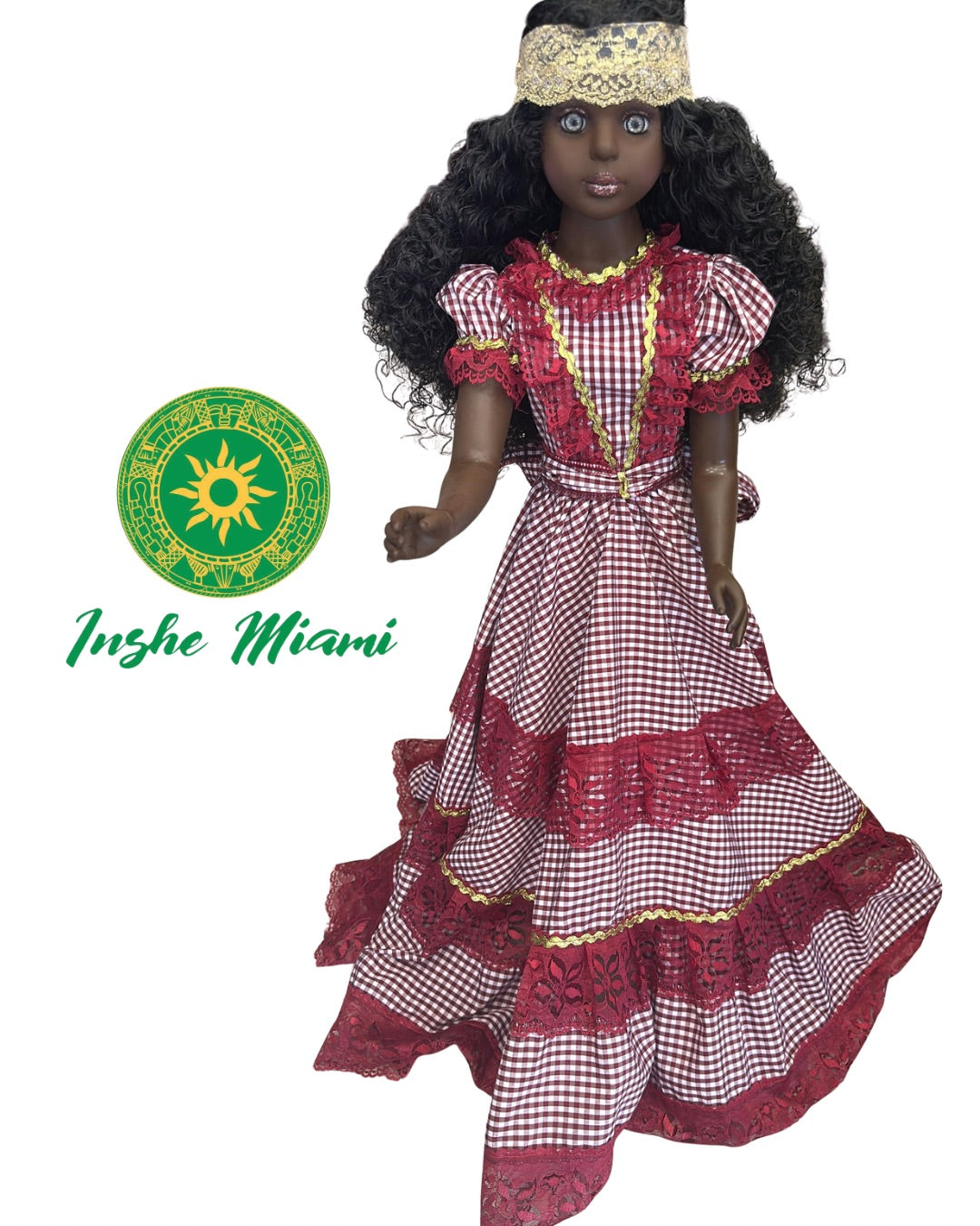 Muñecas grandes, vestidas bellamente en telas de Guinga. Miden aproximadamente 26" de altura. Variamos los modelos constantemente, la producción puede tomar de 1 a 3 semanas.