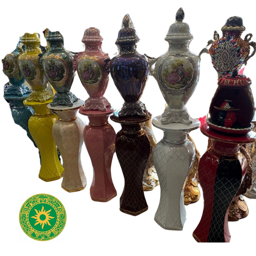 Pedestales decorados con formas de Rombo. De Aproximadamente 31" de alto por 11" de ancho. Seleccione entre las diferentes opciones.