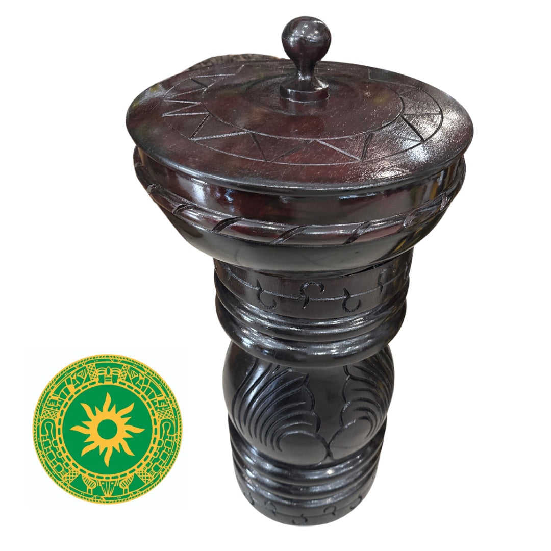 Pilon y Batea Tallados 100 % Madera (Oscuro)