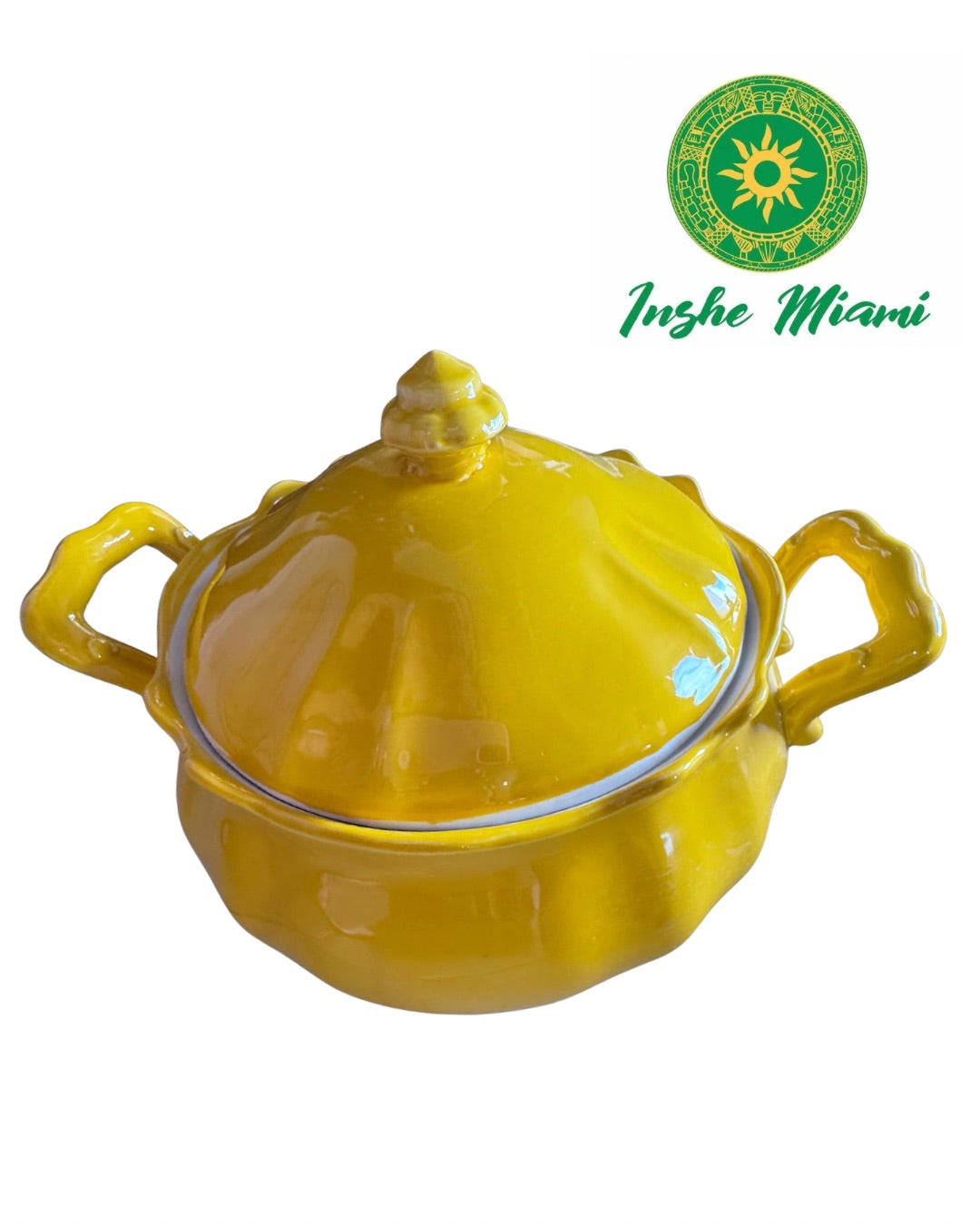 Sopera blanca usada para Aje y Ifa tradicional obatala y demas usos. Este modelo muy usado, sencillo, un solo color sin adornos. Mide aproximadamente 13" por 8".