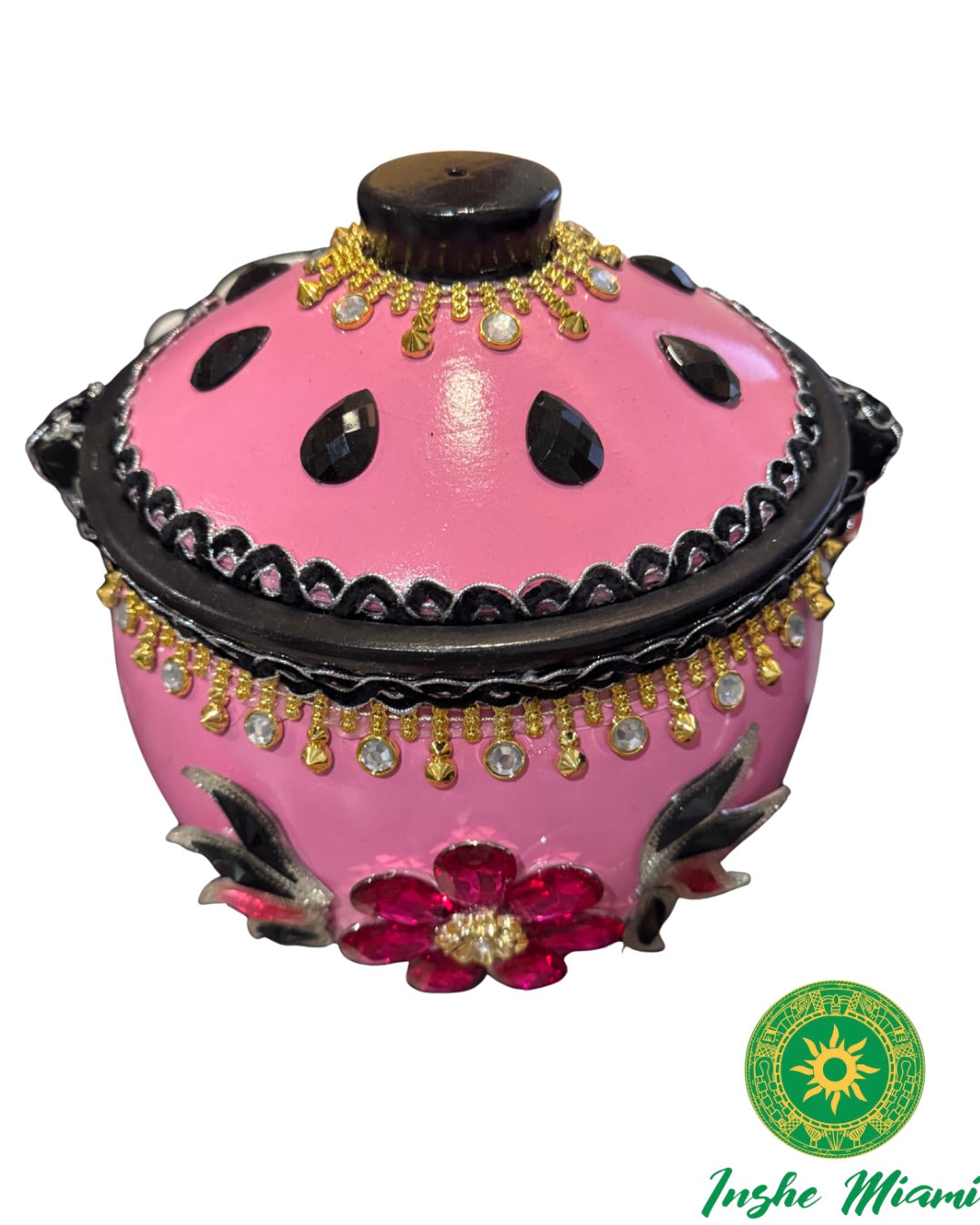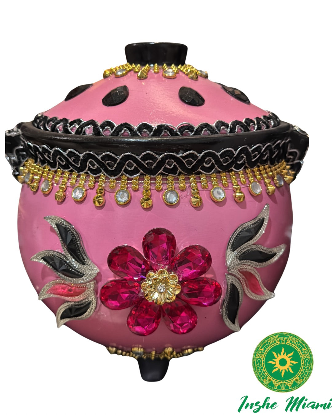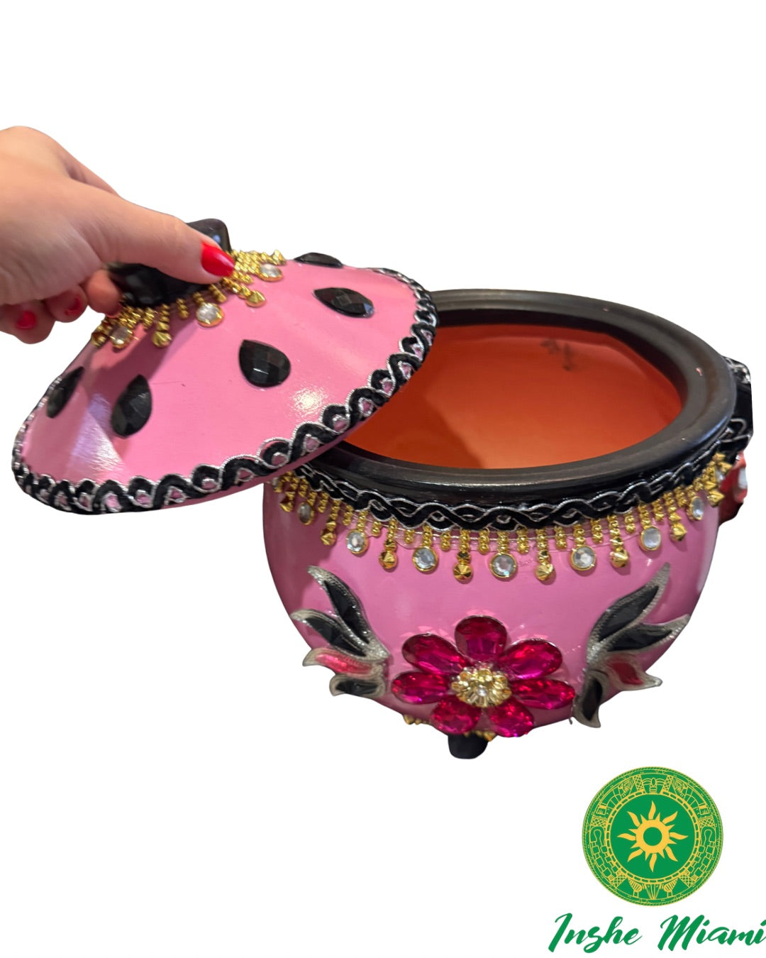 Tinaja de Barro bellamente decorada para Nana. Mide aproximadamente de 10" pulgada de altura por 11" de ancho muy amplia.