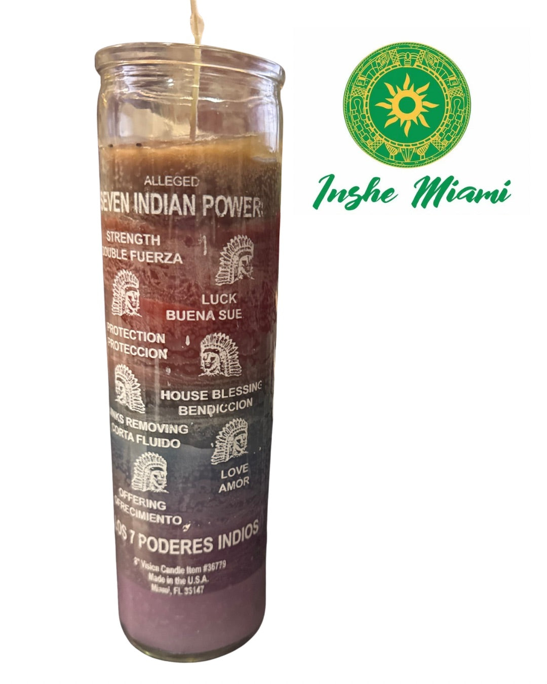 Vela grande de 8 pulgadas, elaborada con 7 colores, muy utilizada para invocar a los 7 Poderes Indios en trabajos y rituales espirituales. Es una vela de larga duración, con un encendido aproximado de hasta 5 días sin apagarse, bajo uso adecuado.